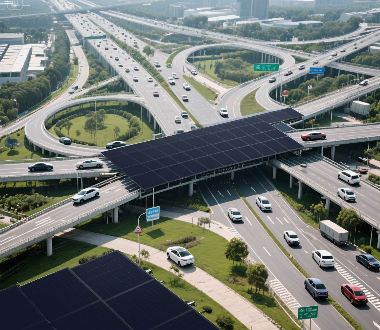 交通運輸排放占我國碳排放總量約10.4%,其中公路運輸占主導地位。“高速公路+光伏”模式利用高速公路邊坡、服務區等空間布置光伏系統,實現了新能源與道路交通的友好適配。